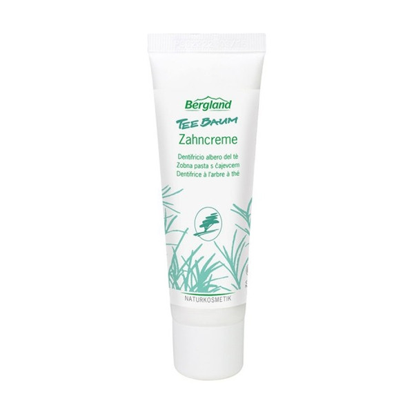 Zobna pasta s ČAJEVCEM TEEBAUM Bergland je zeliščna zobna pasta z naravnim oljem čajevca, za ustno nego občutljivih in h krvavitvam podvrženih dlesni.